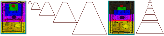 上图左边为 Fit to Scene,每个CSM的包围盒都包围前一个包围盒,即CSM2包围CSM1,CSM3包围CSM2和CSM1,以此类推。可以解决镜头平移、缩放甚至旋转带来的采样点在Shadowmap的Texel中发生的平移和缩放。缺点是包围盒不够紧凑。